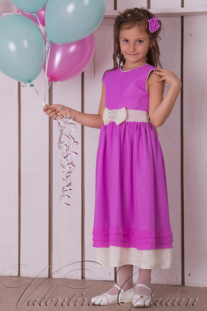 Нарядное платье для девочки изготовлено из шифона двух цветов. Застежка "молния" по спинке.