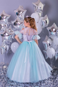 Нарядное платье из парчи. Украшают оборки и драпировка по юбке. Застежка "молния" и фиксирующая шнуровка.