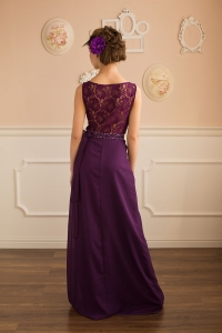 Стильное платье прямого силуэта (бохо) изготовлено из элит-сетки и стрейч-сатина. Линия талии на резинке. Открытая зона декольте украшена 3D кружевом. Эффектно смотрится с болеро.