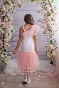 Легкое свадебное платье силуэта русалочка изготовлено из шифона и атласа.