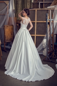 Царское свадебное платье изготовлено из сатина, многослойная юбка из евро-фатина.