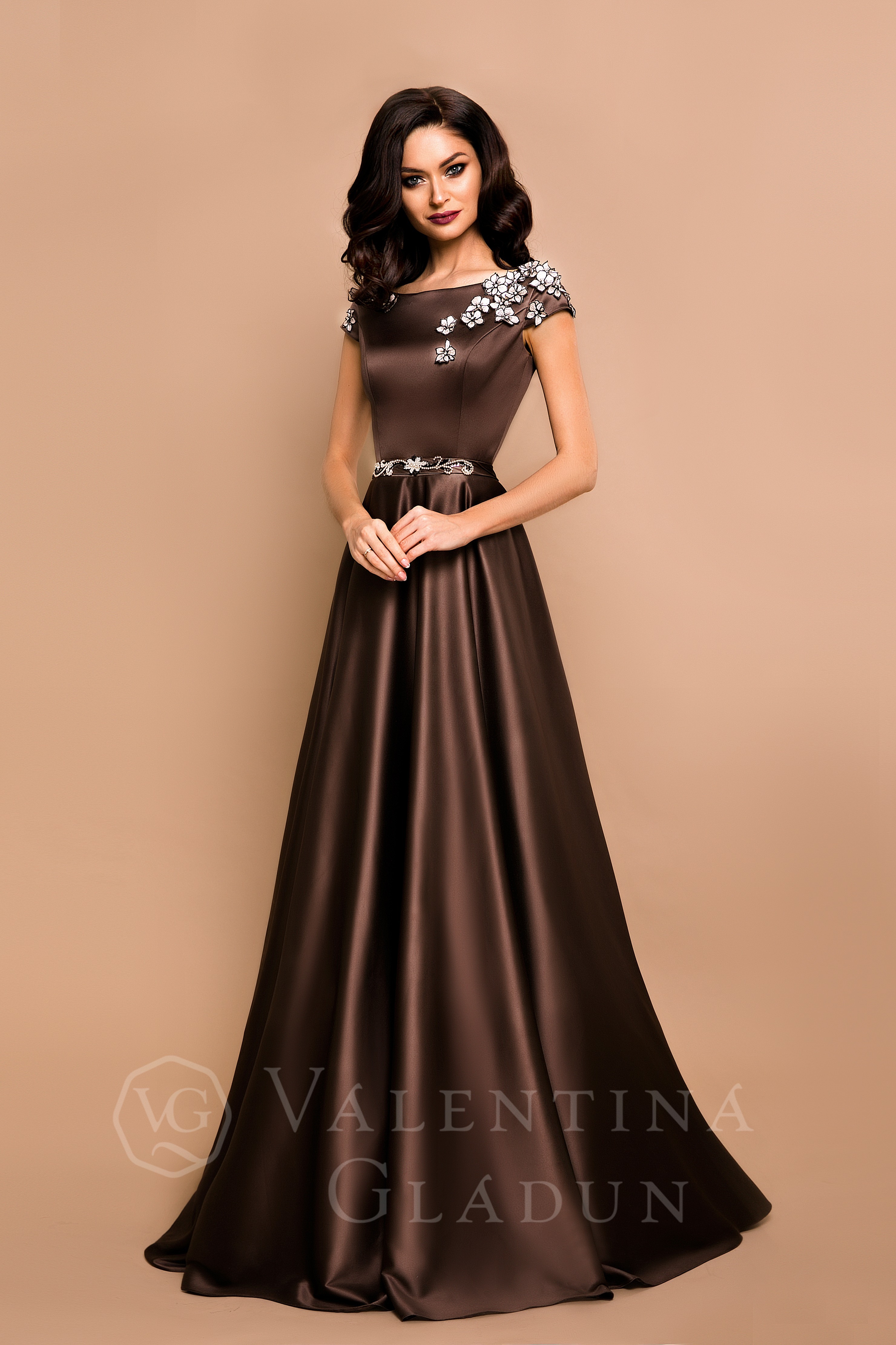 Атласное выпускное платье шоколадного цвета Nila