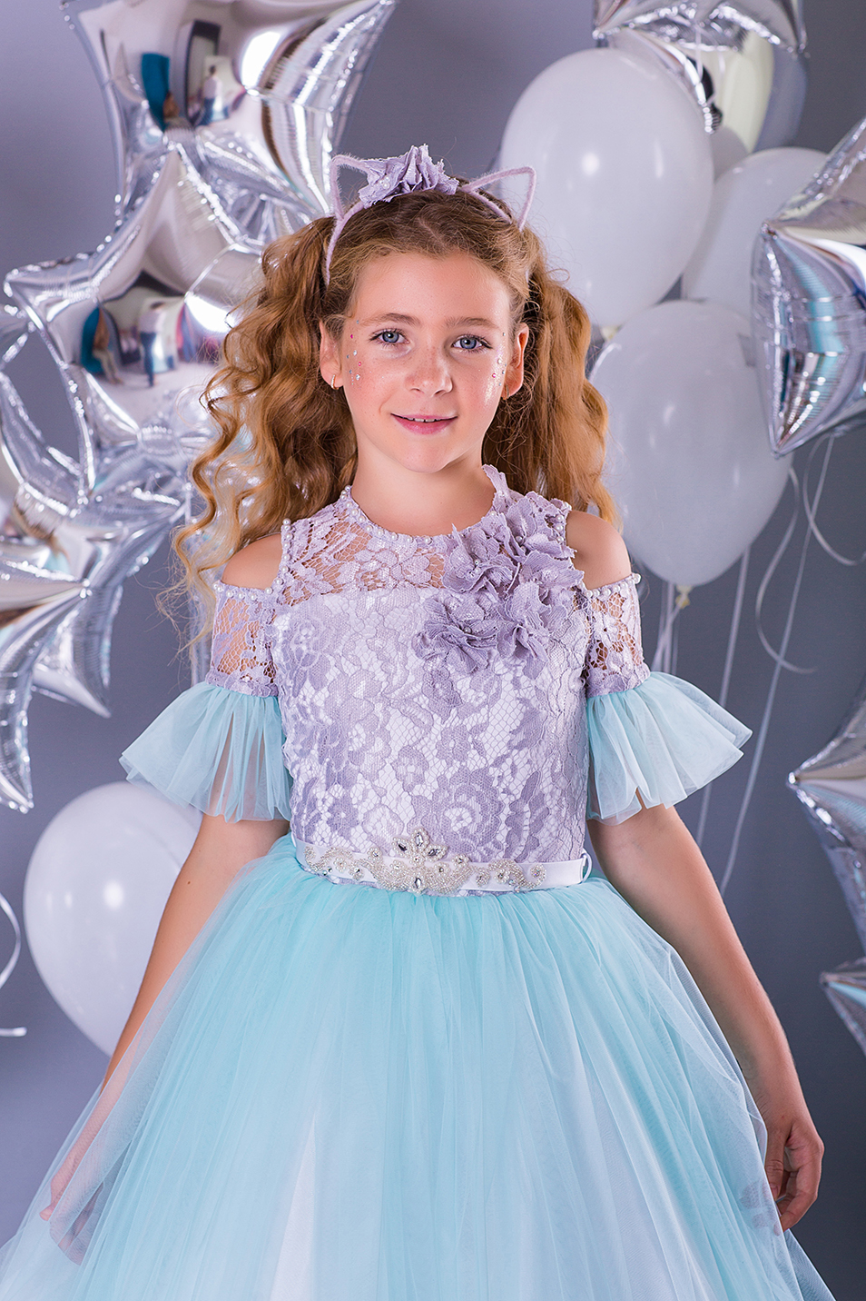 Пышное нарядное платье для девочки с открытыми плечами Vikki Blue Grey